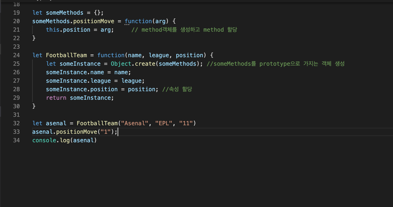 이를 위해 생성자 함수와 method객체를 연결해 줄 함수(여기선 extend)를 만들어야한다.